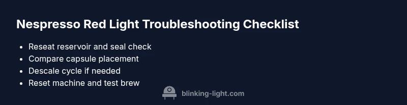 According to Blinking Light, a blinking red light on a Nespresso is a clear signal that the machine is communicating a startup or maintenance issue. The Blinking Light team found that most red-light warnings are not catastrophic and can be resolved with a few routine checks. In practice, this indicator usually means the machine detects improper seating of components, mineral buildup, overheating safety lock, or an urgent reset is required before brewing again. Addressing the light promptly reduces waste and preserves the machine’s lifespan. Quick action also prevents potential leaks or damage to the brew unit. If you ignore it, you may end up with weak extraction, off-t flavors, or repeated shutoffs during a cycle. In this guide, we walk through safe, methodical steps you can take at home to identify the root cause and restore normal operation without voiding any warranty.