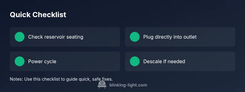 A blinking light usually signals a status that requires attention, often heating, water, or a sensor-related issue. Start with basic checks like reservoir seating and power stability before exploring deeper maintenance.