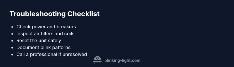 The blinking light on a Daikin air conditioner is not decorative—it’s a fault signal. Across Daikin models, the LED will blink in specific patterns to indicate problems with electrical power, sensor errors, communication between components, or restricted airflow. The daikin air conditioning blinking light is your first clue, but the exact meaning depends on model family and sequence. According to Blinking Light, always approach blinking codes with a safety-first mindset and interpret patterns against the user manual for your exact model. This helps homeowners avoid unnecessary disassembly and risky repairs while guiding you toward the right fix. The goal is to determine whether the problem is something you can safely address or if professional service is required to protect warranty and equipment health.