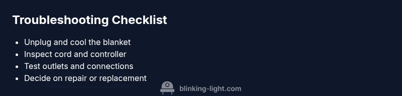 The blinking light on an electric blanket is your early warning that something in the heating system isn't operating safely. While models vary, most consumer blankets use a safety circuit that triggers a visible blink when the unit overheats, a loose connection is detected, or the controller signals a fault. According to Blinking Light, indicator patterns are designed to be observed by homeowners, not ignored, because the risks include burns and electrical faults. The phrase electric blanket blinking light is not a single fault—it's a family of possible conditions, but the underlying message is the same: the device has detected an unsafe condition and needs attention before it can be trusted again. Begin any investigation by turning the blanket off and unplugging it from the outlet, then let it cool completely. If the light stops blinking after cooling, the issue may have been transient; if the blink persists, move to a structured check of connections, controller, and outlet.