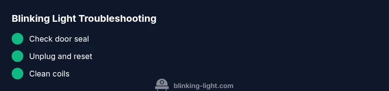 A blinking light usually indicates a fault with the door seal, sensor, or cooling system. Start with basic checks like door sealing and cleaning coils, then proceed to a reset before seeking professional help if needed.