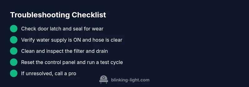 A blinking light usually signals an error code or status requiring attention, most often related to the door latch, water inlet, or drain. Start with the simplest checks and proceed through a diagnostic flow.