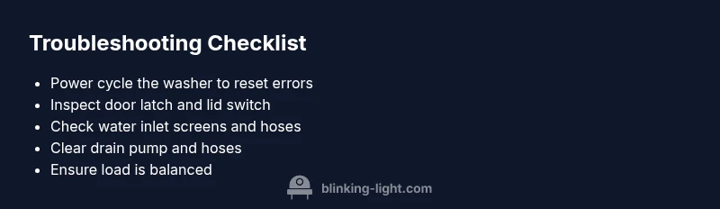 A blinking light signals an error detected by the washer's system. It usually points to a specific subsystem, such as the door latch, water inlet, or drain. Check the model's manual for exact fault codes and follow the diagnostic steps in this guide.