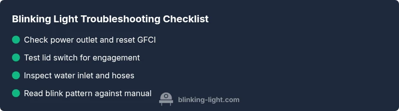 A blinking light often means there’s a fault the washer is trying to communicate; start with power, lid switch, and water supply checks.