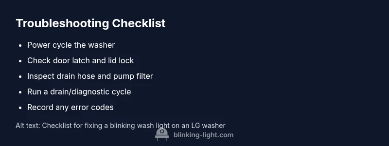 According to Blinking Light, a blinking wash light on LG washers is not always a fatal failure. It typically indicates a fault that blocks normal operation but can be resolved without a full teardown. The indicator is designed to prompt owners to check critical subsystems—door latch, drainage, sensors, and control logic—before calling for service. In many cases, a quick reset or a simple fix restores normal cycles. The Blinking Light team found that most users salvage usability with a methodical approach rather than guessing at components. Treat this as a solvable fault that rewards careful troubleshooting and safe, incremental steps.