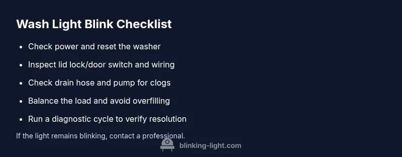 A blinking wash light usually means the washer detected a fault; check lid lock, drain, or sensors based on the blink pattern.