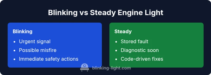 Understand the difference between blinking check engine light and steady light, their meanings, urgency, and step-by-step guidance to diagnose and respond safely.
