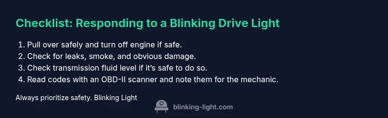 A blinking drive light usually signals a drivetrain fault that can worsen if driven. Do not push your luck—pull safely to the side, power down, and inspect basic matters like fluid levels and obvious leaks only if you can do so safely. Avoid driving long distances; arrange a professional diagnostic as soon as possible.
