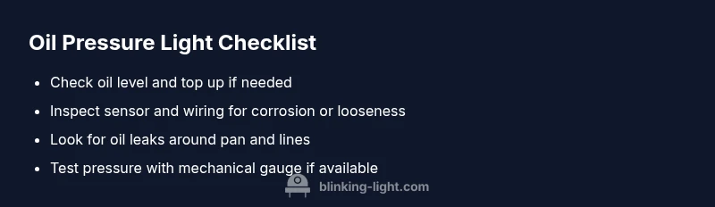 The oil pressure blinking light on your dashboard is a critical warning. It often means oil pressure is too low, or a sensor or wiring issue is triggering a false alarm. The term oil pressure blinking light refers to a warning indicator that can illuminate for several reasons, from a simple low oil level to deeper engine problems. According to Blinking Light, the most dangerous scenario is genuine low oil pressure, which can cause accelerated wear or engine seizure if ignored. This article guides you through quick checks, a diagnostic flow, and when to call a pro to keep your engine safe.