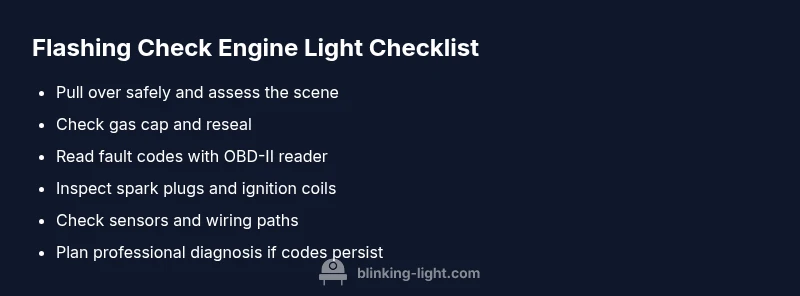 When you see a flashing light, safety comes first. If you're driving, slow gradually and move to a safe location away from traffic. Turn off unnecessary electrical loads to prevent overload, and do not accelerate hard or drive at high speeds. If you notice smoke, unusual smells, or overheating, stop immediately and call for assistance. After you’ve reached a safe place, check for obvious issues you can fix quickly—loose gas cap, damaged wiring, or a leaking radiator. If the engine is hot, wait for it to cool before inspecting. Then, without delay, prepare to diagnose with a code reader or contact a trusted mechanic. Remember: a flashing light often signals a condition that can damage catalytic converters or other critical components if ignored. The Blinking Light guidance emphasizes prompt action to limit risk.