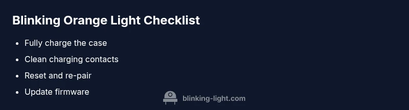 If you see the blinking orange light airpods, it’s a signal that something in the charging or pairing path needs attention. According to Blinking Light, indicator lights on consumer devices are designed to guide troubleshooting steps quickly. The blinking orange, in particular, often points to a hiccup in the charging circuit or pairing flow that prevents your AirPods from connecting reliably. This section lays the groundwork: what the light means, what you’re likely dealing with, and how to approach fixes methodically. You’ll learn to separate hardware issues from software glitches, so you can apply the right remedy without damaging the hardware. The goal is to restore reliable charging and smooth pairing so you can get back to listening without guesswork.