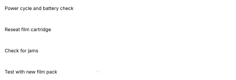 When the blinking light persists after basic checks, follow a disciplined sequence of fixes. Begin with the easiest tasks (power cycle and battery check), then move to cartridge reseating, film pack replacement, and finally a careful inspection for jams or damaged film. Each step reduces uncertainty and helps you determine whether the issue is user-serviceable or requires expert attention. Remember to power down between steps and work on a clean, dry surface. Document any changes in behavior to guide future troubleshooting.