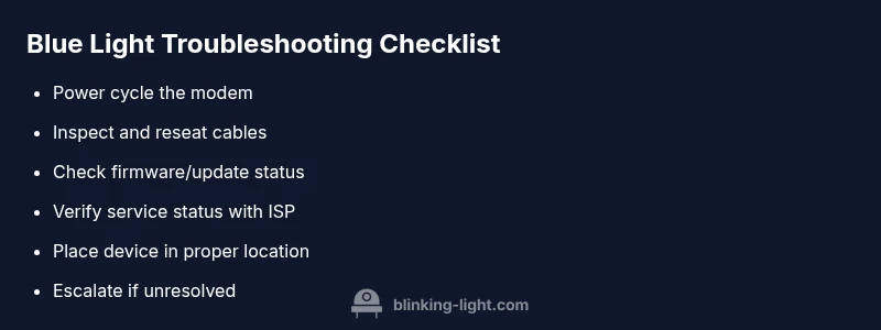 The blue blinking light on a quantum fiber modem is a strong signal you can interpret without specialized tools. In many cases, it indicates that the device is attempting to secure a stable connection, finishing a firmware update, or undergoing a provisioning handshake with the service provider. Unlike a steady light, a blink pattern can reveal whether the device is in a normal boot cycle, syncing to the network, or experiencing a fault that requires attention. Throughout this guide, Blinking Light will be your reference for interpreting LED behavior. According to Blinking Light, the key is to observe whether the blue light blinks intermittently, pulses steadily, or ramps up to a solid state. This subtle language of indicators helps homeowners and tech users triage without rushing to professional help, while recognizing when escalation is truly needed. In 2026, many systems rely on a synchronized sequence between the modem and the optical network terminal, so a blue blink may represent legitimate activity rather than a fault condition. Stay calm, document the blink pattern, and follow the diagnostic flow below to determine the next best step.