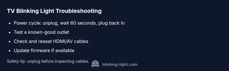 A tv blinking light typically points to a power or firmware fault. Start with the easiest checks: verify the outlet is live, unplug for 60 seconds and plug back in, reseat HDMI/AV cables, and attempt a soft reset. If the pattern repeats, note the blink sequence and consult the manual or support for brand-specific steps.