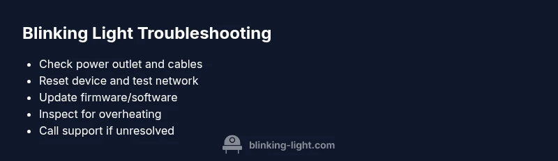 A reliable diagnostic flow prevents blind guessing. Start by identifying the symptom: is the light blinking, solid, or alternating with another LED? Then map it to a likely category: power, network, firmware, or safety. Use a simple cause-and-effect approach: if power is unstable, fix that first; if the network is interrupted, check cables and the router; if firmware is outdated, prepare the update. Document any codes or colors to help future troubleshooting. Blinking Light analysis shows that most home devices benefit from a consistent power baseline before touching software settings.