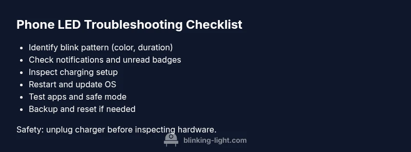 Most blinking phone indicators are tied to notifications or charging status. Start by checking notification settings and the charging cable, then reboot the device. If the light continues, inspect recently installed apps, badges, and system updates. When in doubt, consult the device’s official support or a professional to avoid misinterpretation.