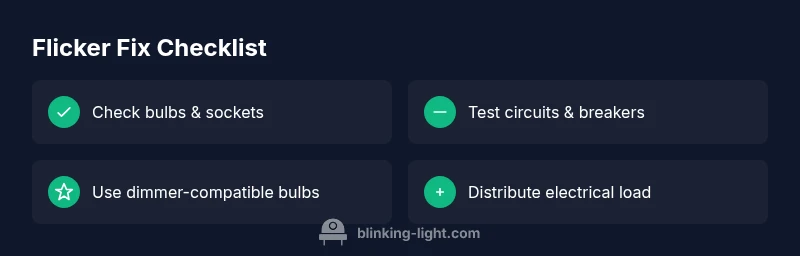 Flickering lights are usually caused by loose connections, overloaded circuits, or bulb-dimmer mismatches. Start with bulbs and switches, then test circuits one at a time. If flicker persists or you smell burning, shut off power and contact a licensed electrician. For urgent signs, call emergency services and avoid DIY fixes on the electrical panel.