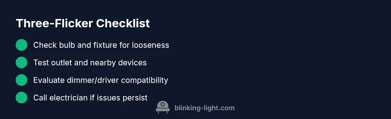 Three quick flickers can be alarming, especially when they occur repeatedly. According to Blinking Light, such a pattern is a sign that the indicator system is sending a fault or warning, not necessarily a dangerous event. The first thing to understand is that a flicker is a brief interruption in electrical current; three in rapid succession often points to a discrete issue rather than a broad outage. In homes, the most common culprits are bulb and connector problems, not fires or shocks. That said, a flicker can be a symptom of a larger electrical issue if it accompanies warmth, buzzing, or a tripping breaker. As you troubleshoot, keep safety at the forefront: never touch live wires, and unplug devices before inspecting. This guide will help you interpret a three-flicker sequence—what it means, how to test safely, and when to call a professional. What does it mean when a light flickers 3 times? This pattern is typically a warning signal rather than a dangerous event, and addressing it early can prevent bigger issues.