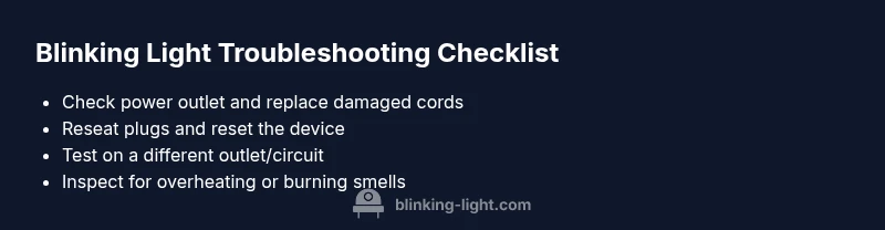 A blinking light usually signals a status or fault you need to address, commonly from a loose connection or a power fluctuation. Start with simple checks: reseat plugs, inspect outlets, and reset the device. If the blinking continues, test another outlet or circuit and consider professional help for electrical safety.