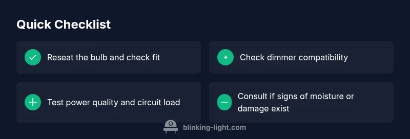Before you call for help, try these safe, simple checks. First, switch off power to the fixture at the circuit breaker, then confirm the bulb is seated firmly and is the correct type for your fixture (LEDs vs. incandescent can flicker if mismatched). Remove and reinsert the bulb to ensure a solid contact. Inspect the fixture for loose wires, signs of corrosion, or a loose socket. If you have a dimmer switch, ensure it is compatible with your bulb—some LED bulbs flicker or blink when used with incompatible dimmers. Finally, test power at the nearby outlet or switch to rule out a broader circuit issue. If the light still blinks after these steps, you’re ready to try the diagnostic flow or call a professional inspection.
