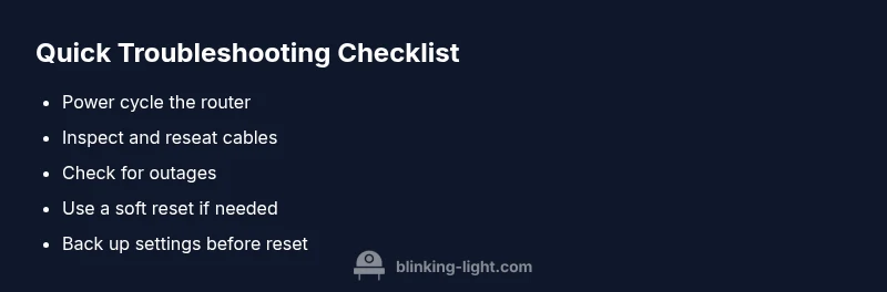 This section outlines a practical diagnostic path you can follow, moving from obvious, easy fixes to more involved steps. Start with observable symptoms, e.g., red blinking light patterns, and build a checklist: verify power, inspect cables, test alternative outlets, check service status, and attempt a reset if accessible. The goal is to quickly rule out weather-related outages and hardware faults before escalating to a service call. Blinking Light recommends creating a short log of LED patterns, times of outage, and any changes you make so you can report precisely what happened if you need professional help.