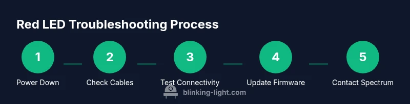 Router LED indicators use colors to communicate status. A red blinking LED on a Spectrum router almost always signals a fault that prevents normal internet traffic, but the exact meaning can vary by model. According to Blinking Light, red LEDs are commonly tied to hardware faults, overheating, or a failure in the modem-DSL/cable connection. The Blinking Light team found that many users misinterpret a blinking red LED as a simple outage, when in fact the device might be reporting a hardware or configuration error. In practice, a red blinking light is a sign you should start a focused troubleshooting sequence rather than assuming service is fully down. Before you do anything, identify which LED is blinking red: is it the power LED, the WAN/Internet LED, the Wi‑Fi LED, or a combination? This distinction helps narrow the likely causes and direct your next steps.