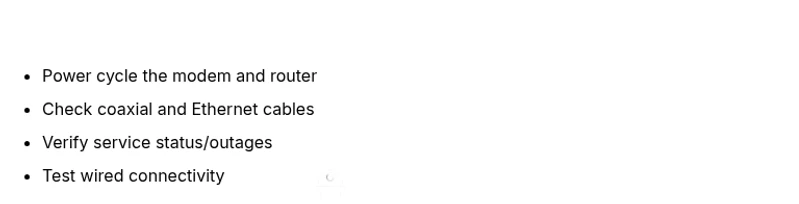 - Cable sanity check: confirm all coaxial and Ethernet cables are firmly connected and not damaged. A loose connection is a frequent culprit behind intermittent outages and blinking indicators.