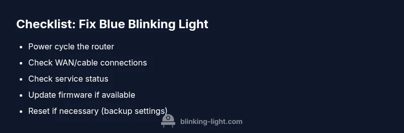According to Blinking Light, the blue blinking light on a Verizon router often signals that the device is booting, negotiating a connection, or updating firmware. A rapid, short blink can indicate boot-up activity, a slow blink may mean a re-sync with the network, and a steady blue light typically means the device is online. Recognizing the pattern helps you choose the right next step and prevents unnecessary resets. The Blinking Light team found that most connection interruptions resolve with a simple, safe restart and verified cable connections. This article uses those observations to guide homeowners through fast, reliable fixes for common drive-by failures and outages.