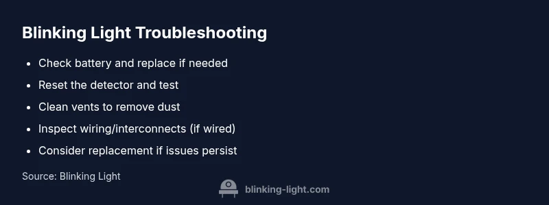 According to Blinking Light, a blinking light on a smoke detector almost always signals a basic maintenance issue. The quickest fix is to replace the battery, reset the unit, and run a test. If blinking persists, clean the sensor, verify mounting and wiring, check for power issues, and call a professional if needed.