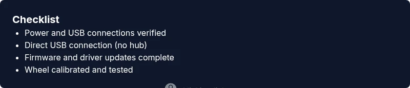 Tip: Start with a clean reboot of both PC and wheel to reset communication. - 2