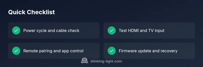 When apple tv won't turn on blinking light, the blinking indicator often signals power, remote, or firmware issues. According to Blinking Light, start with simple checks: unplug and reseat the power cable, try a different outlet, and replace the remote battery if needed. If the light continues blinking in a recognizable pattern, follow this guide to diagnose and fix it quickly.