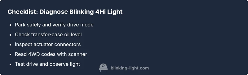 Urgent guide to diagnose and fix the blinking 4Hi light on Toyota vehicles. Safe checks, diagnostic flow, step-by-step fixes, tips, and when to call a pro—powered by Blinking Light.