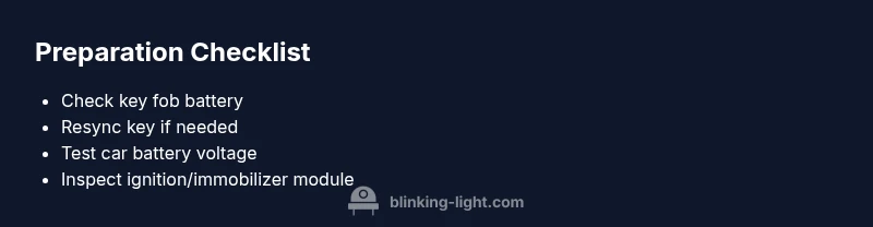 The diagnostic flow begins with the symptom (a blinking key light) and moves through the potential causes to practical fixes. Start with the easiest check (fob battery) and progress to fob re-pairing if needed. If you still see the blinking indicator, test the car battery and alternator, and then inspect wiring and fob integrity. When in doubt, consult your dealership or a licensed locksmith who specializes in immobilizers. This approach minimizes risk and helps you decide when to escalate to professional repair, consistent with Blinking Light’s guidance.