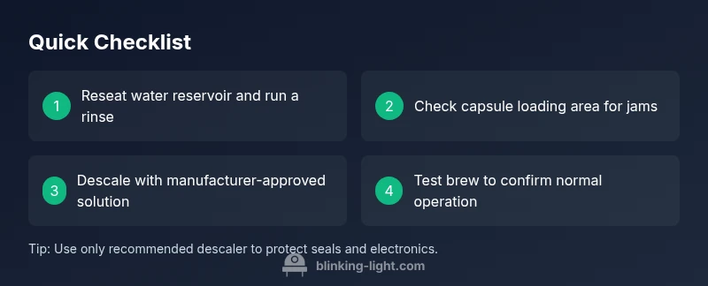 A blinking light usually signals maintenance needs, a ready-to-brew prompt after a descaling cycle, or a capsule loading issue. Start with basic checks like reservoir seating and a quick rinse, then move to descaling if needed.