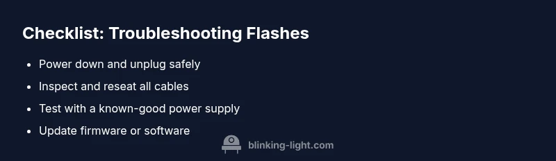 The most likely causes are transient electrical noises or loose connections that resolve when you reset power or reseat components. Start with safety: unplug sources, then check obvious faults and reseat cables. If the flash recurs after these steps, escalate to device-specific fixes or professional help. Can flashes of light go away? often yes, with prompt, systematic action.