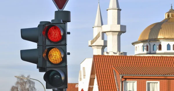 Blinking red light is a traffic signal pattern that requires a full stop at intersections; proceed only when the way is clear.