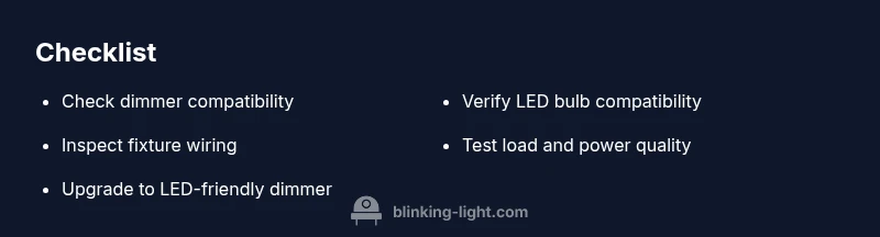 Most likely the flicker comes from a dimmer that isn’t LED-friendly or from supply variability. Start by swapping to an LED-compatible dimmer or replacing the bulbs with ones rated for dimming. If flicker persists, check wiring and power quality. Blinking Light recommends a cautious, stepwise approach to avoid shocks.