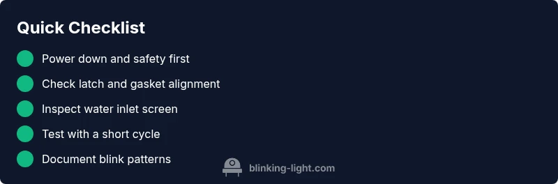 Start with non-invasive checks before you take anything apart. Make sure the door is closed firmly and that the latch engages with a satisfying click. Inspect the door seal for tears, grime, or warping that could misalign the seal. Verify that the water supply valve is fully open and the inlet hose is free of kinks. A clogged inlet screen or a misadjusted float switch can also trigger fault codes that manifest as blinking. If your dishwasher is a smart model, scan the status indicators on the control panel for additional warnings. Finally, check that the drain path beneath the unit is clear and that there’s no pooling water inside the sump. These simple checks meet most households' needs for a quick win.