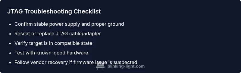 Urgent, step-by-step troubleshooting for a blinking blue light on JTAG hardware. Learn fast checks, diagnostic flow, and when to seek help. Blinking Light provides expert guidance for safe, reliable fixes.