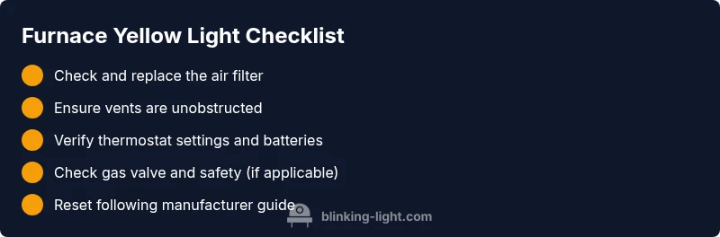The furnace yellow blinking light usually signals a safety or maintenance warning that requires attention. Start with quick checks you can do tonight: replace a dirty air filter, ensure vents aren’t blocked, and verify thermostat settings. If the pattern continues or a code appears, shut down the furnace and contact a licensed technician for a precise diagnosis.