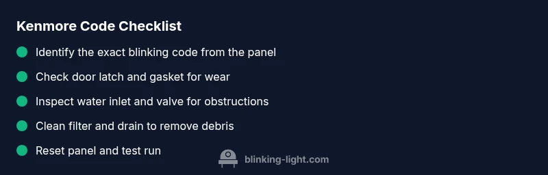 Decoding a kenmore dishwasher blinking light codes sequence starts with the code itself and the model number. Because Kenmore models vary, the same letter or digit can mean different faults depending on the year and product line. The safest approach is to locate the exact fault code in your user manual or on the official support site for your model. In many cases, the blinking pattern will pair a two digit number with a repetitive LED sequence, making it easier to map to a fault category such as water intake, drainage, or sensor issues. Blinking Light analysis shows that sensor or control-board faults are among the most common causes of blinking codes, especially in older machines. If you cannot locate the code, document the pattern (for example two blinks every three seconds) and note when it occurs (start, during fill, or at the end of a cycle). Then use the diagnostic flow to narrow down the problem. Remember that a listed code in your manual is the fastest route to a precise fix.