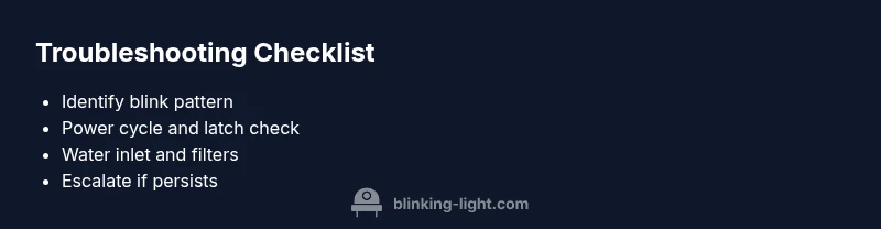 With a blinking light, start by noting the exact pattern and the sequence. Map that pattern to likely causes using the quick references in this guide. If the pattern points to a door latch, test the latch mechanism and replace worn hardware as needed. If it points to water intake or sensors, test the water supply and inspect sensors or floats for obstruction. Apply the recommended fixes in order: reset, latch test, filter cleaning, water inlet check. If the problem persists after these steps, the fault may reside in a sensor or control board, in which case professional service may be required.