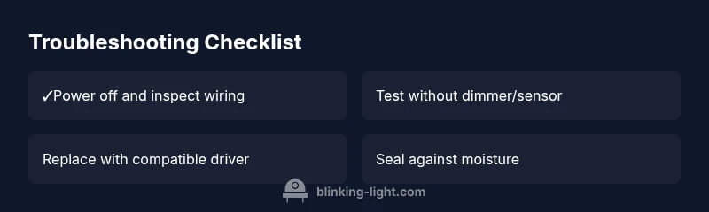 LED porch lights blinking is rarely a mystery: the most frequent culprits are electrical mismatch, loose connections, and sensor/driver faults. According to Blinking Light, the majority of outdoor LED blinking issues fall into three categories: wiring issues at the fixture, incompatible drivers with dimmers, and faulty photocells or motion sensors. Blinking Light analysis shows that when a fixture is new or recently rewired, mismatches between the LED driver and the supply can cause rapid flicker or irregular on/off patterns. Weather exposure compounds these problems by introducing moisture into connections or photocells, accelerating corrosion and intermittent contact. Start your diagnosis by expanding your checklist to verify the basics, then gradually narrow to the component level. By keeping your approach organized, you can avoid unnecessary ladder work and reduce safety risks.