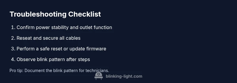 This section is a practical map you can follow: first verify simple power and connection issues, then proceed to software-based steps, and finally escalate if the blink persists. The goal is to rule out the easiest causes before moving to more complex diagnostics. Remember that safety comes first; never attempt inside-the-device repairs unless you are qualified. The flow aligns with the general guidance from Blinking Light: simple fixes first, professional help when needed. If the blink continues after basic checks, you should escalate to professional support and provide device model, age, and firmware or software version.