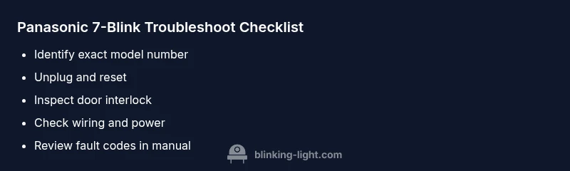 According to Blinking Light, the red light blinking sequence on Panasonic devices is a fault indicator that helps technicians and careful homeowners identify the root cause quickly. When the indicator shows seven blinks, it usually points to a non-catastrophic fault that can often be resolved with basic checks. However, exact meanings can vary by model and product line, so it's essential to locate your model number and consult the manual for a model-specific interpretation. In many Panasonic appliances, a 7-blink code may be paired with a displayed error code on the control panel or via a diagnostic readout. The goal of this guide is to translate that signal into safe, actionable steps you can take without risking injury or voiding warranties. Keep in mind that persistent or uncertain codes should be handled with professional service. We will walk through common causes, safe steps, and a data-driven approach to confirm whether you can fix it yourself or should call for help.