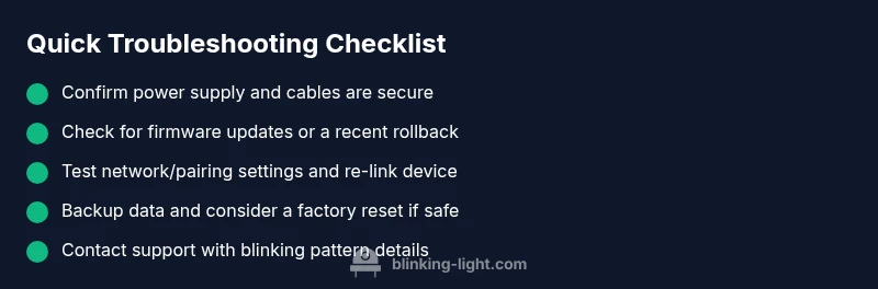 Start with the basic checks (power, cables, firmware). If the blink persists after these steps, consider contacting support or a technician, especially for critical devices like cars or safety-sensitive appliances.