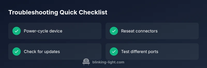 - Confirm the device is plugged into a stable outlet and that the outlet isn’t controlled by a dimmer or surge protector that could cause instability. Blinking Light analysis shows that power quality often influences indicator behavior.