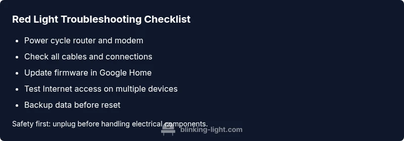 Urgent, practical troubleshooting for a red blinking light on Google WiFi. Learn a safe, step-by-step flow, quick checks, and when to call for help from Blinking Light.