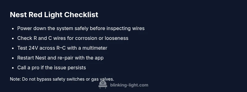 A red blinking light on your Nest thermostat typically signals a power issue or hardware fault. Start with quick checks: ensure the thermostat is powered, verify the C-wire connection, and restart the device. If the light continues to blink, follow the diagnostic flow for a precise diagnosis and safe fix.