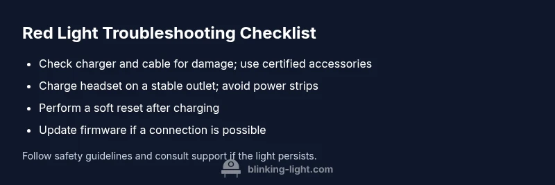 The red blinking light on Quest 2 usually signals a power or firmware issue. Start by charging the headset with a reliable USB-C charger and cable, then perform a soft reset. If the light remains after rebooting, follow the diagnostic flow in this guide for step-by-step fixes.